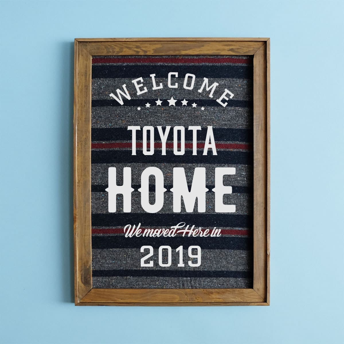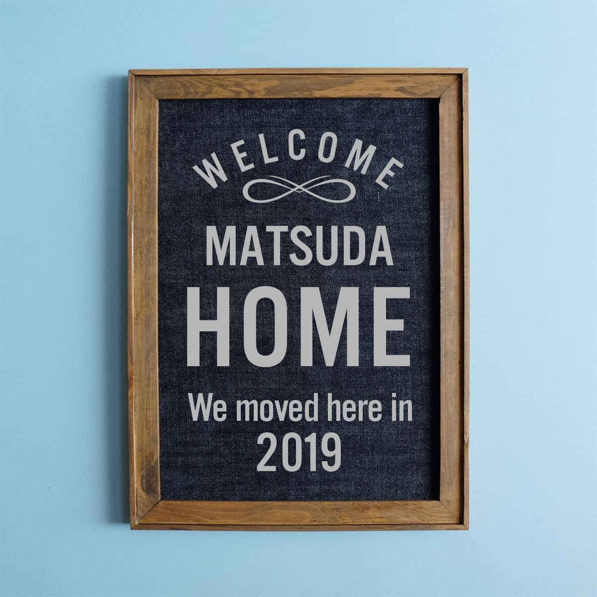 引越し祝いや新築祝いに!ファブリック生地とビンテージフレームで作るオリジナルのポスターです。家族のお名前やお引越し年度を印字するので、玄関やリビングにぴったり。