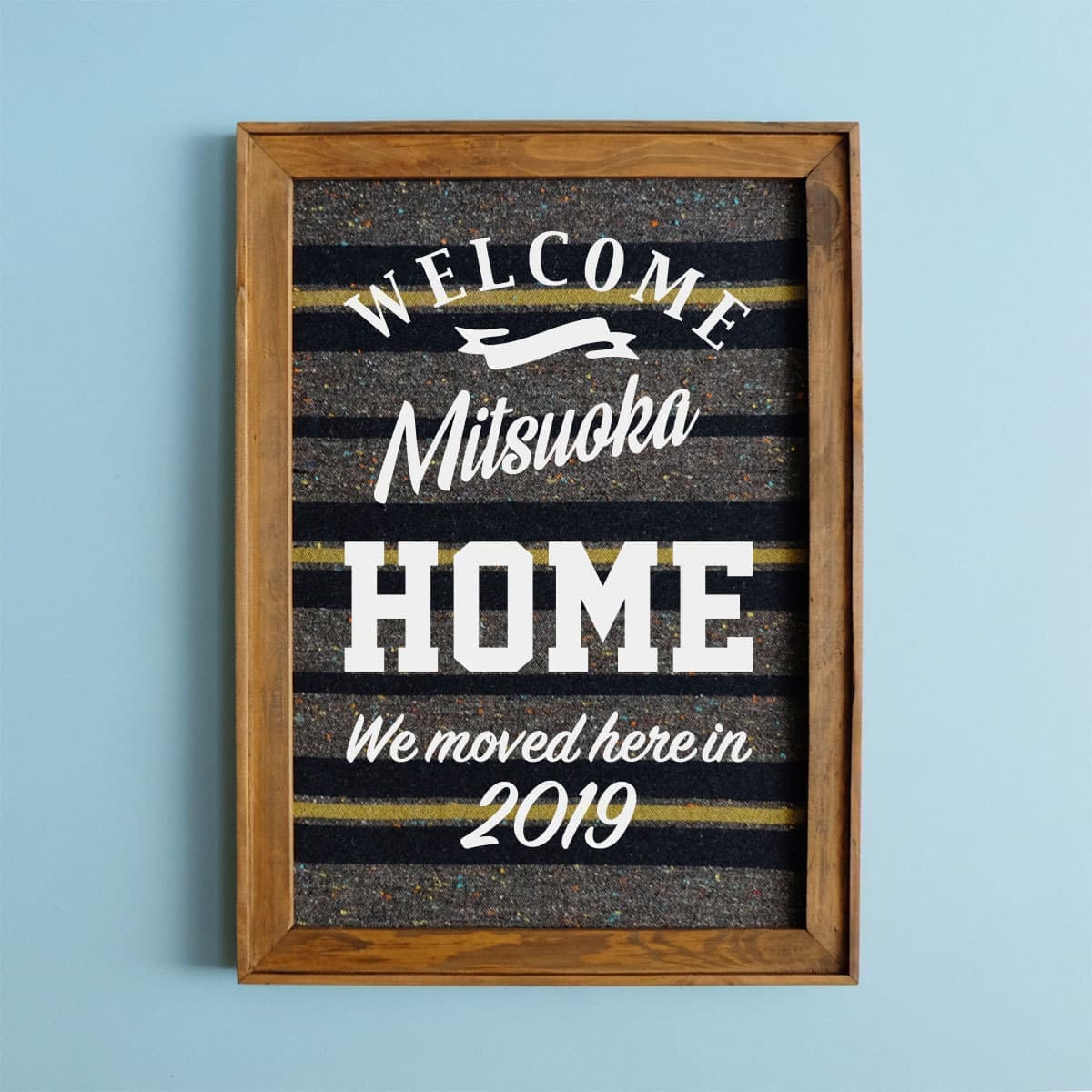 引越し祝いや新築祝いに!ファブリック生地とビンテージフレームで作るオリジナルのポスターです。家族のお名前やお引越し年度を印字するので、玄関やリビングにぴったり。